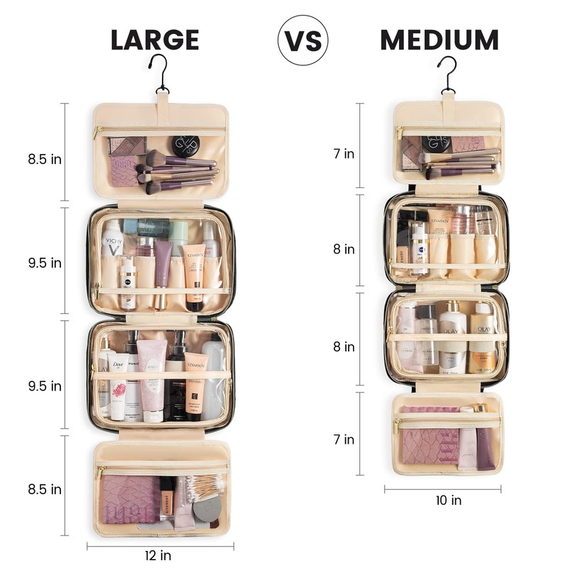 - Large capacity: size: 28 cm x 22 cm x 6.6 cm, for multi-day holidays, all toiletries and make-up will be stored. Unfolded: 76cm x 28cm, this size is perfect for accessing toiletries when hanging.