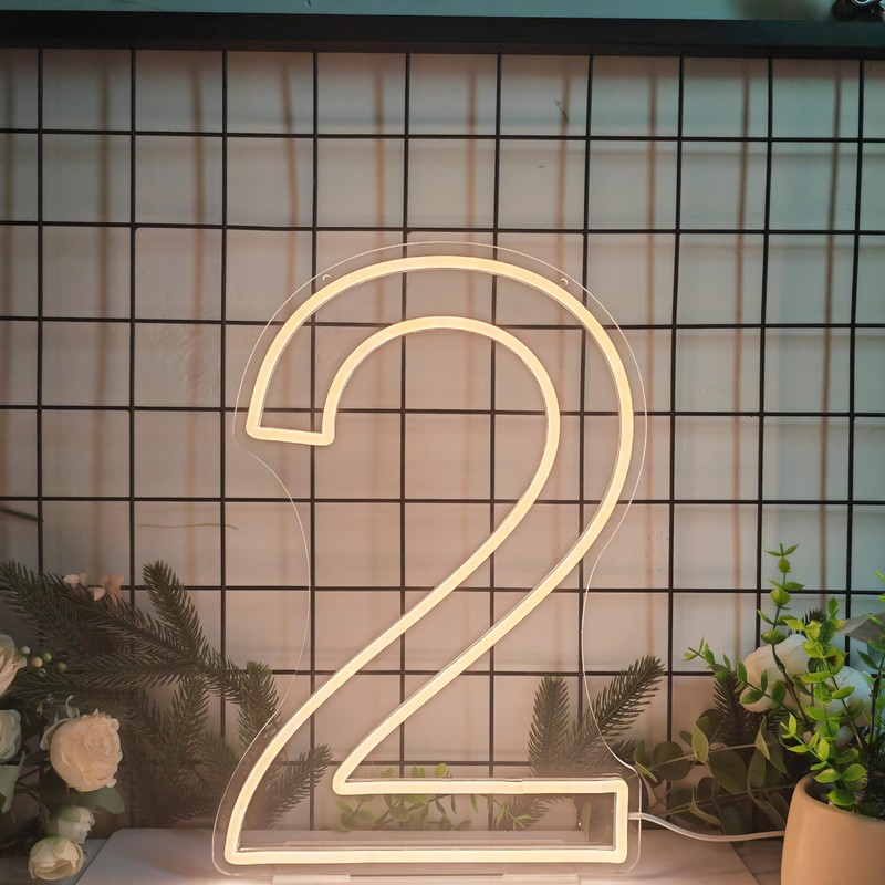 Lovewenying Neon Signs Number 2 Birthdays Decor Neon Lights Party USB Plus Battery Case Light up Your Baby's Birthday with Our Neon Number Two Sign (Number 2-Warm White)