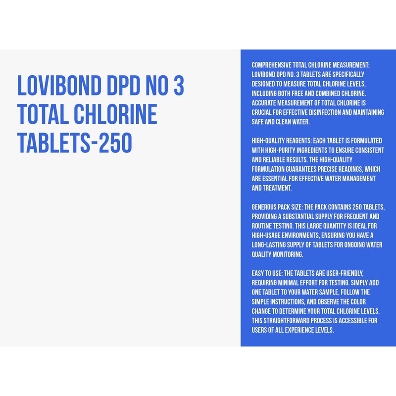- Lovibond DPD No 3 Total Chlorine Tablets