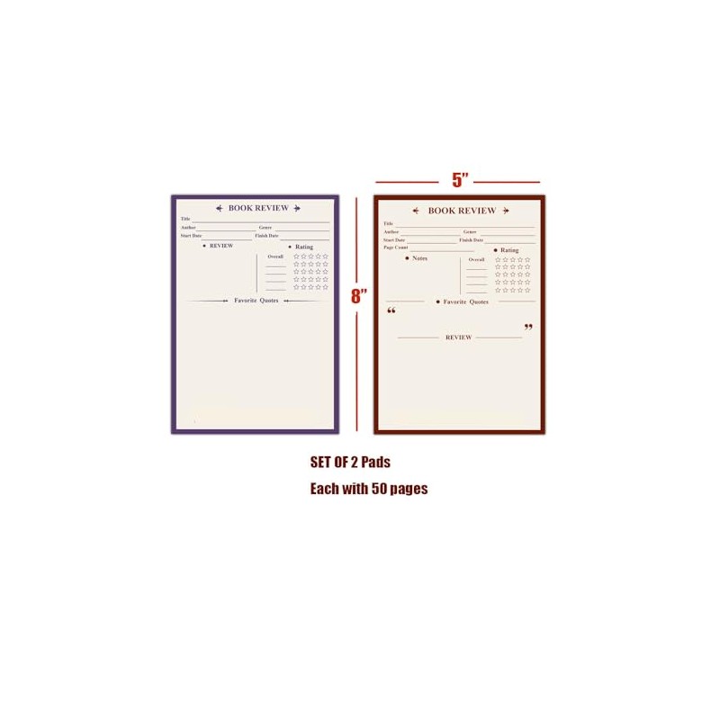 lovielf Book Review Sticky Self-Adhesive Notepad | 5”x 8” | Classic and Vintage Simple style Notepad | Bookish Gift | Book Lover | Reader stationery |Set of 2 Pads | Each with 50 pages
