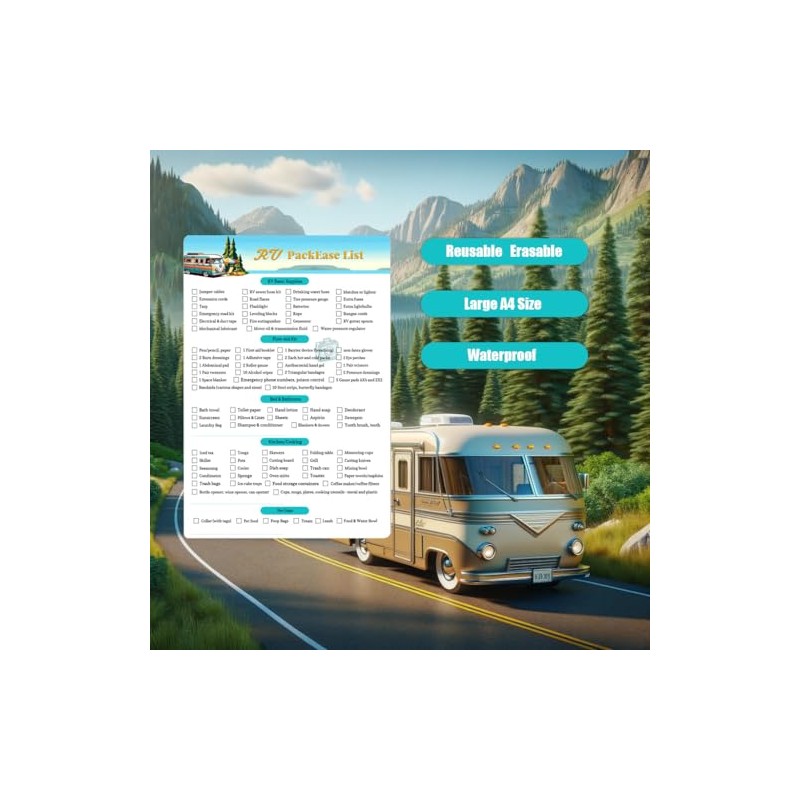 - Reusable Design: Featuring an A4-sized 8.27" X 11.69" , wipe-clean material, this RV Packing List is designed for repeated use, offering cost-effective solution for all RV travel enthusiasts.