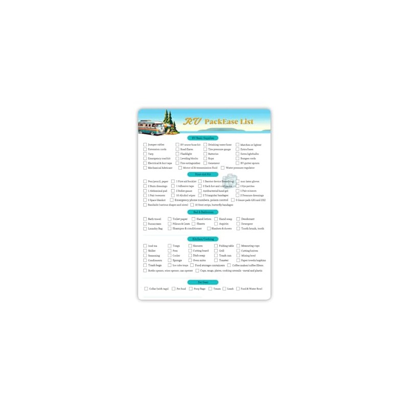 - Convenient Double-Sided Feature: With a double-sided design, the front provides a standardized RV equipment checklist, while the back has a blank 'My Packing List' space for personalized needs.