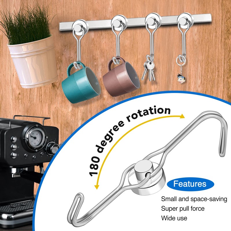 - 【STRONG MAGNETIC HOOKS】 The swivel magnet hooks for hanging heavy duty have 30lbs pull based on vertical direction. The tension of magnet hooks for hanging based on horizontal application are reduced by 2/3. The tension of hook magnets are also affected by the material of the contact surface and other factors.