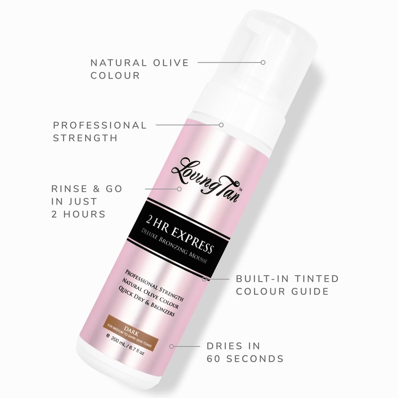 Loving Tan 2 HR Express Self Tanning Mousse, Dark - Streak Free, Natural, Professional Quality - 5+ Sunless Self Tanner Applications per Bottle, Cruelty Free, Naturally Derived DHA - 6.7 FL Oz