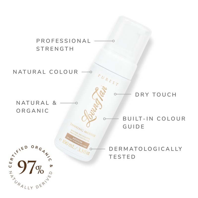 Loving Tan Loving Tan Purest Tanning Mousse, Medium - Sunless Tanner Made From 97% Certified Organic & Naturally Derived Ingredients - Up to 5+ Self Tan Applications Cruelty Free, Vegan - 3.3 Fl Oz