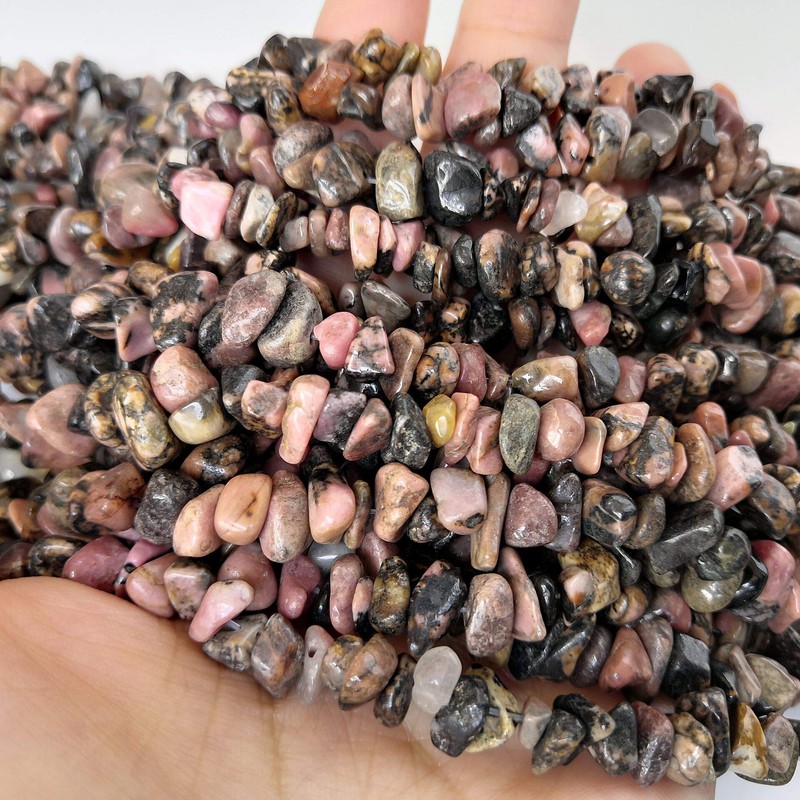Lovionus89 150 CM Rhodonite Irregular Shaped Crystal and Healing Tumbled Chip Stone Beads for Jewelry Making