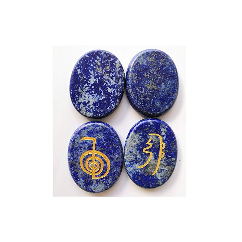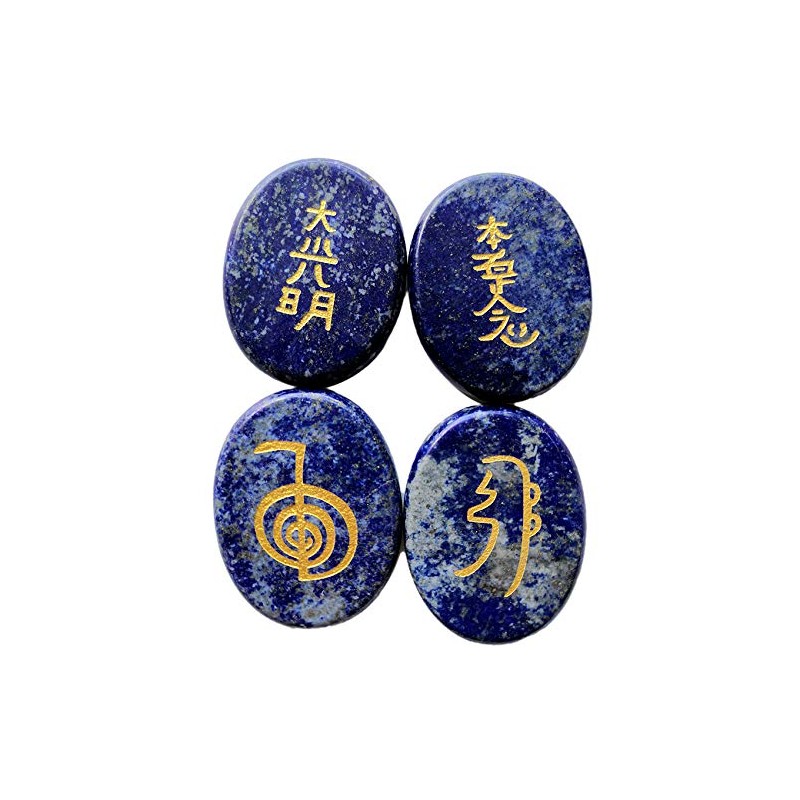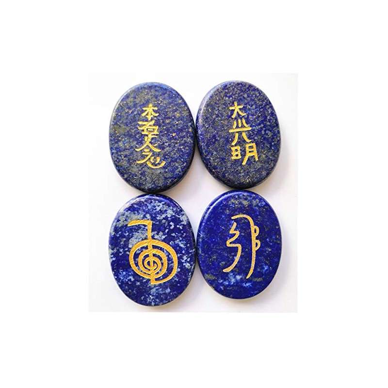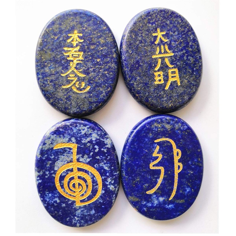 - Set of 4 Stones are etched with the following traditional Usui Reiki symbols:Cho Ku Ray (Power),Sei Hei Ki(Purification & Harmony), Hon Sha Ze Sho Nen(Connection),& Dai Ko Myo (Empowerment & Enlightenment)