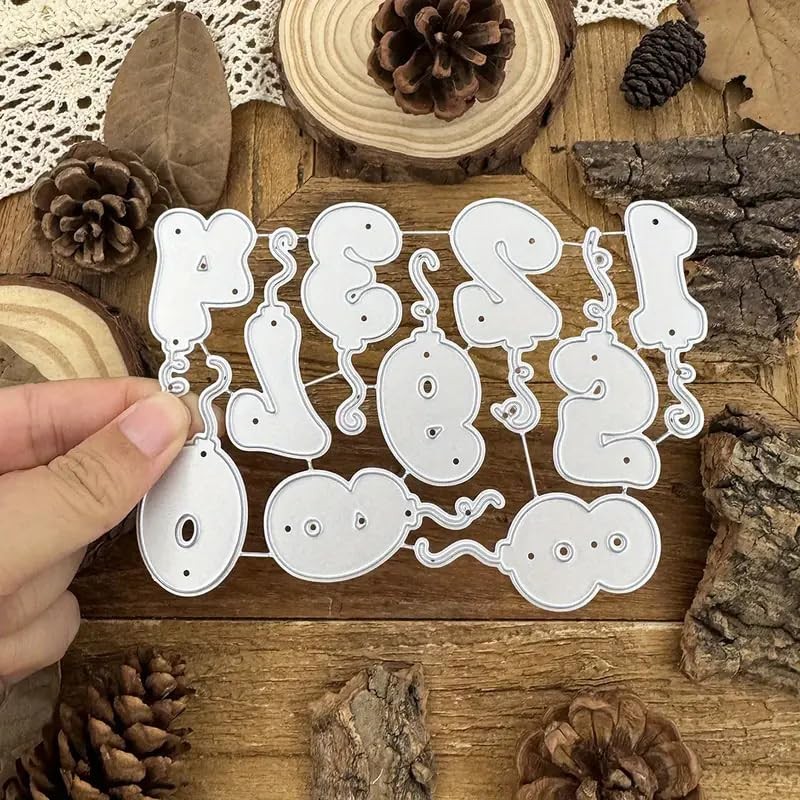 Lovley Birthday Numbers Balloons Letter Metal Die Cuts,Flower Branch Leaf Cutting Dies Cut Stencils for DIY Scrapbooking Album Decorative Embossing Paper Dies Card Making
