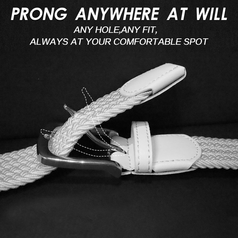 - 【Braided Design】: This woven stretch braided belt allows the buckle closure in any position of the strip, so you get the perfect tightness and accurate fit on your waist;
