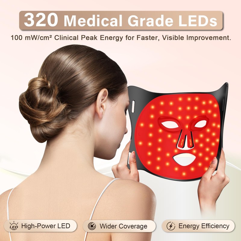 - ✨ 【Medical-Grade LEDs, Gentle Yet Effective】 With 320 LEDs and 70–100 mW/cm² of energy, this led face mask light therapy delivers light deep into the skin to support collagen production and help reduce breakouts.