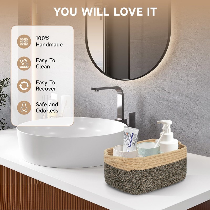 - 【Versatile and Convenient】LOVSTORAGE storage basket. Foldable and easy to store. Equipped with handles, it is convenient to carry and store. At the same time, the thickened handles and double stitching process prevent tearing, feel comfortable, and will not restrict your hands even if heavy objects are placed. These cotton rope storage baskets can be placed in the living room, bedroom, bathroom, baby room, wardrobe, and even under the bed. They are ideal for organizing your home or office items.