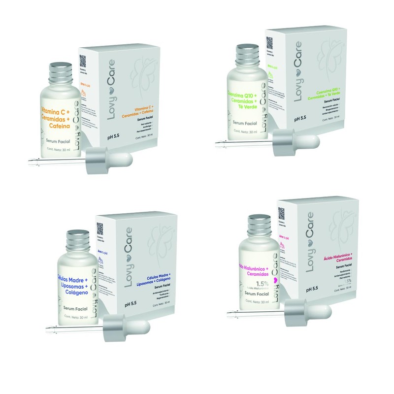 🌟 ⭐ Lovy Care Kit Serum´S Faciales Lovy Care Serum Ácido Hialurónico+ Ceramidas Serum Vitamina C+Ceramidas + Cafeina Serum Coenzima Q10 + Ceramidas+ Té Verde Serum Células Madre+ Liposomas + Colágeno 30 ml c/u Reafirmante- Antienvejecimiento- Piel radiante- Antifatiga- Piel desestresada - Renovación Celular- Biogeneradora- Tonificante ⭐ 🌟