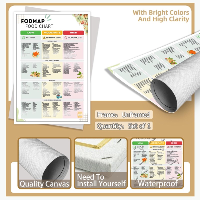 - Comprehensive Food List: This Low FODMAP Food Chart Poster provides an extensive IBS food list, helping you identify gut-friendly options and plan meals effectively to support your digestive health.