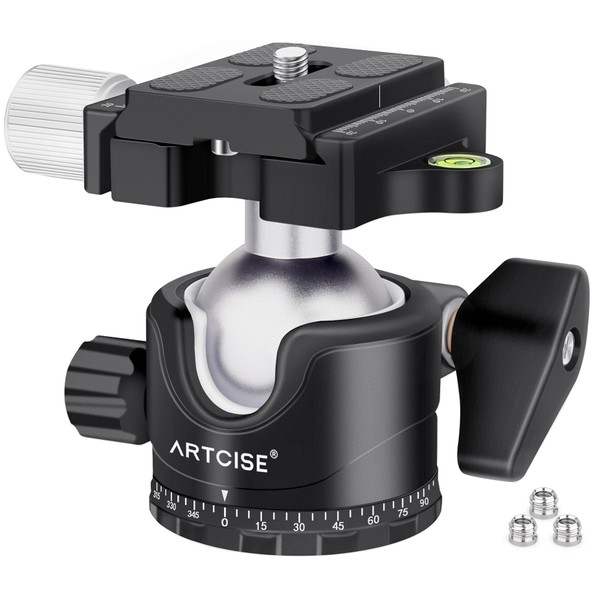 Low Profile Ball Head 36mm Stability Panoramic Tripod Head 360 Rotating Professional Metal Ballhead with 1/4 inch QR Plate for DSLR Cameras Tripods Monopods Camcorder Slider Max Loading 33lbs/15kg