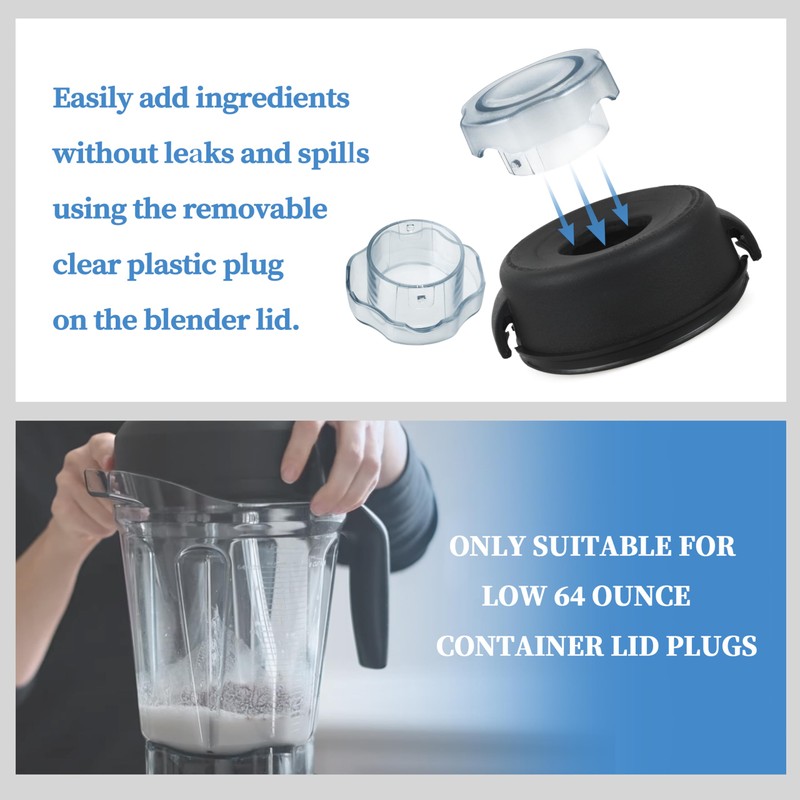 Low Profile Lid Plug Replacement for Vita-mix 64oz Containers - Compatible with Pro300, Pro750, VM0103, VM0158, 7500 Models (1 Piece)