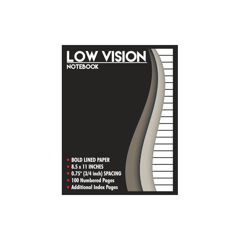 Low Vision Paper Notebook with Black Border: Thick Bold Black Lines on White Sheet - For Visually Impaired and Legally Blind - Extra Wide Ruled - ... Spacing | Large Print 8.5"x11" | 100 Pages