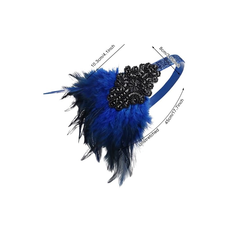 - Authentic 1920s Design: This headpiece features a striking blue feather paired with a black beaded applique, perfectly embodying the elegance and glamour of the Roaring 20s.