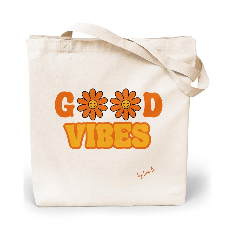 Loxato Printed Fabric Bag, Cotton Bag, Printed 100% W 35 x H 42 x D 8 cm, Canvas Fabric 220 g/m², Printed Jute Bag, Shopping Bag, Long Handle, 70 cm Shopping Bag, Good Vibes