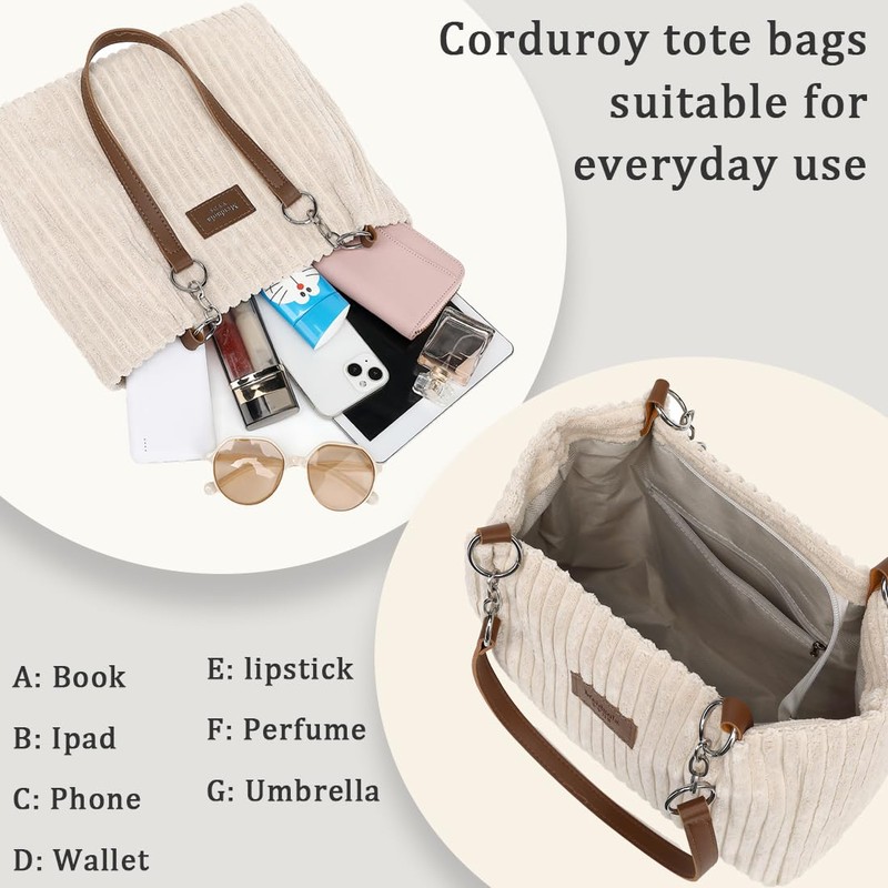 - Low-Maintenance Design - The corduroy material is practical and easy to clean. Simply wipe it with a damp cloth for quick maintenance or machine wash it for a thorough clean, keeping your tote bag fresh and looking new
