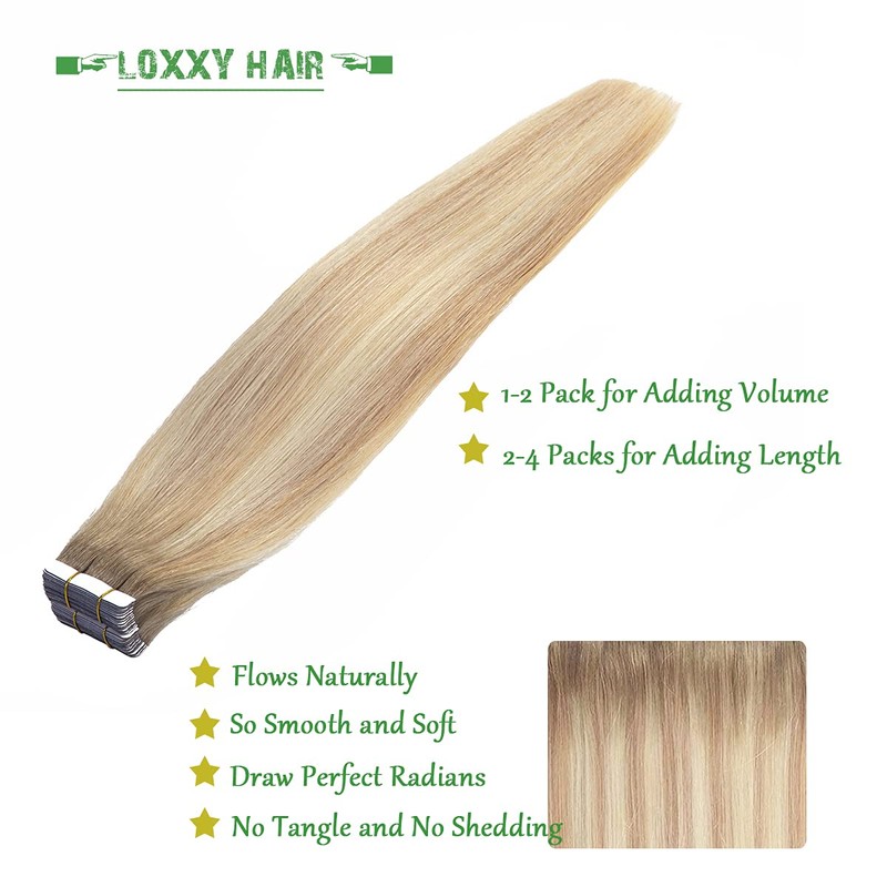 All of the Loxxy hair are directly cut from the young lady without any synthetic hair. We focus on offering high quality human hair products for every customer. Perfect hair tape extensions are comfortable to wear, with a flat heat resistant bond that blends perfectly with your hair giving you no discomfort, it can match your hair well.