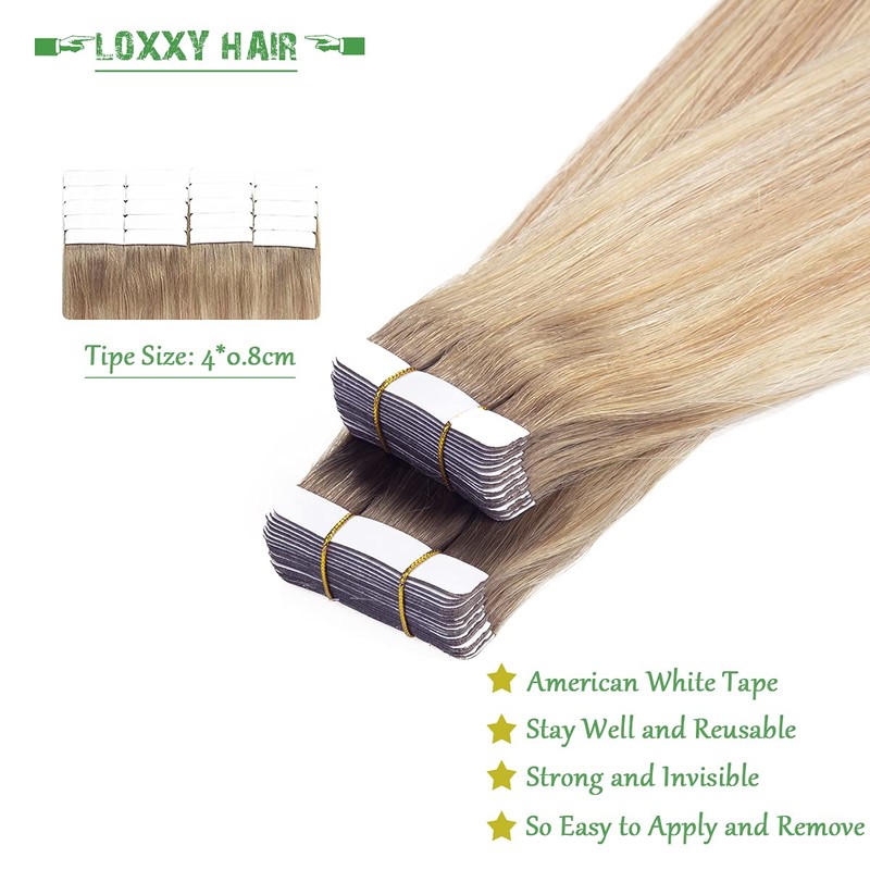 - Loxxy tape in hair extensions: made with remy human hair extensions from one donor, soft and silky with a beautiful feel, no tangle, no dry, mini shedding