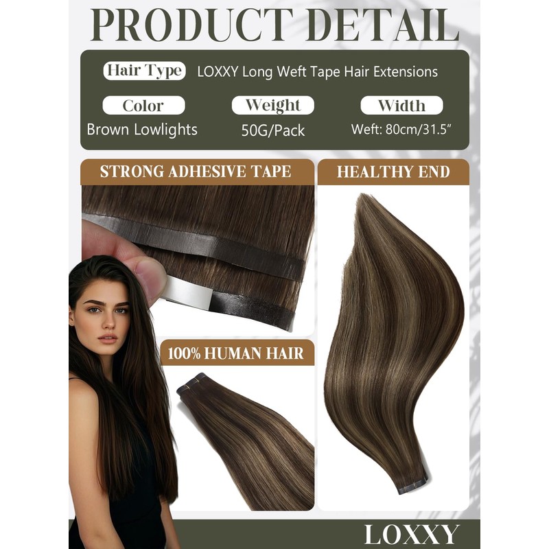 • 【High Quality 100% Human Hair】 Loxxy wide tape in hair extensions crafted from premium 100% human hair, these tape hair extensions provide a natural look and feel. The hair is soft, shiny, and blends seamlessly with your own hair, ensuring you turn heads wherever you go.