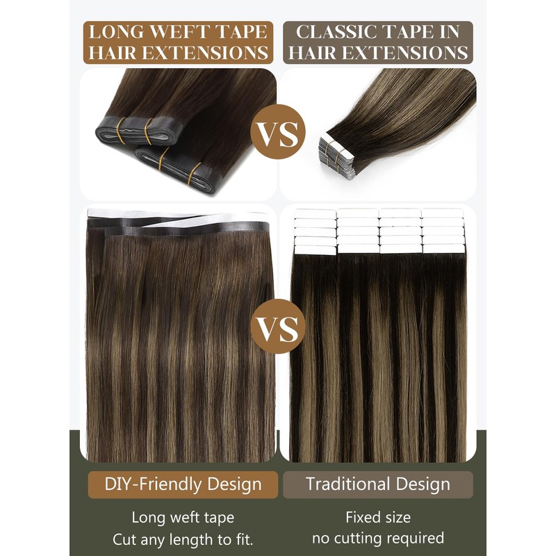 • 【DIY-Friendly Design】Our long weft tape in hair extensions offer the unique ability to DIY the wide. Easily trim the long weft tape to your preferred wide for seamless blending.
