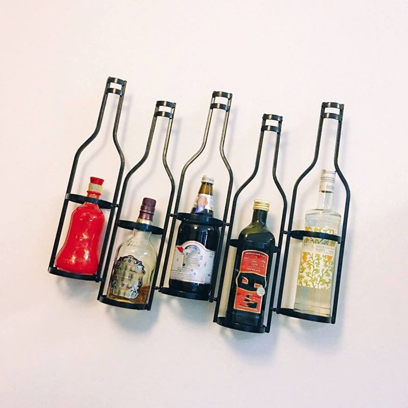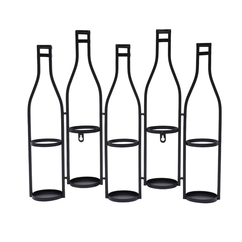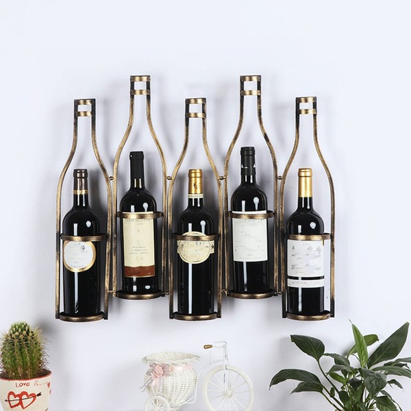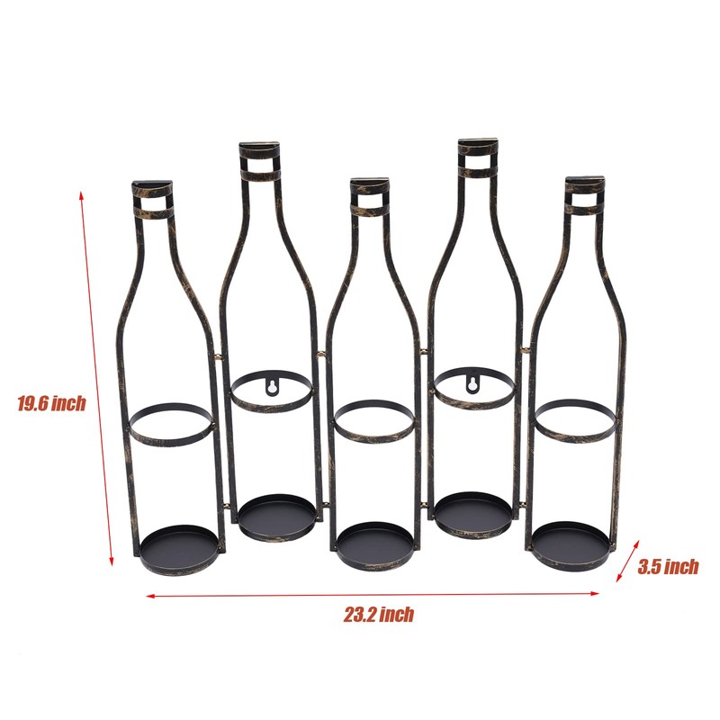 LOYALHEARTDY 5 Bottles Creative Wine Bottle Wall Mount Wine Rack Bronze Decorative Metal Wine Bottle Storage Organizer Rack Wine Bottle Holder