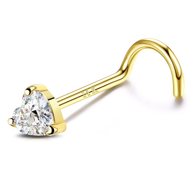 - 14K REAL GOLD HEART NOSE RINGS: Unlike nose studs with gold plating or overlays this modern body jewelry is made with 14K real gold and is solid throughout to ensure a clean, hypoallergenic and nickel free, comfortable fit that looks great and is safer for sensitive skin.