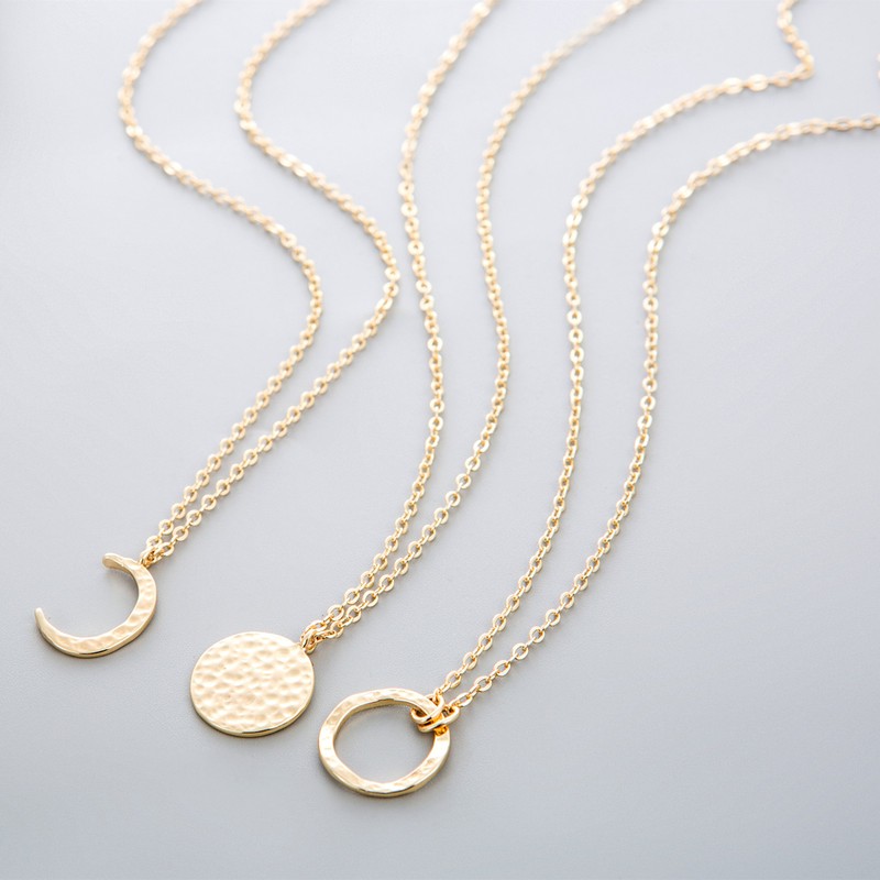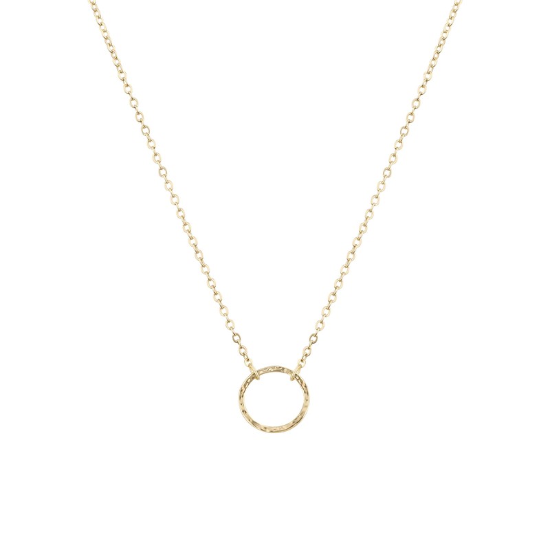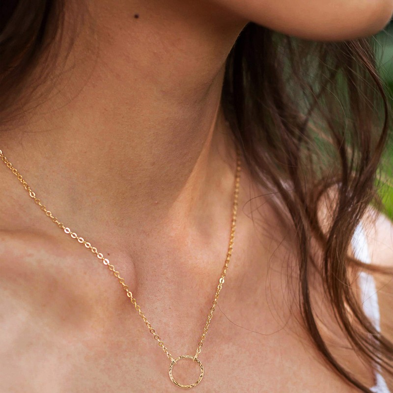 LOYATA Karma Open Circle Pendant Necklace, 14K Gold Plated New Moon Crescent Moon Full Moon Open Circle Hammered Pendant Necklaces for Women (Circle Gold)