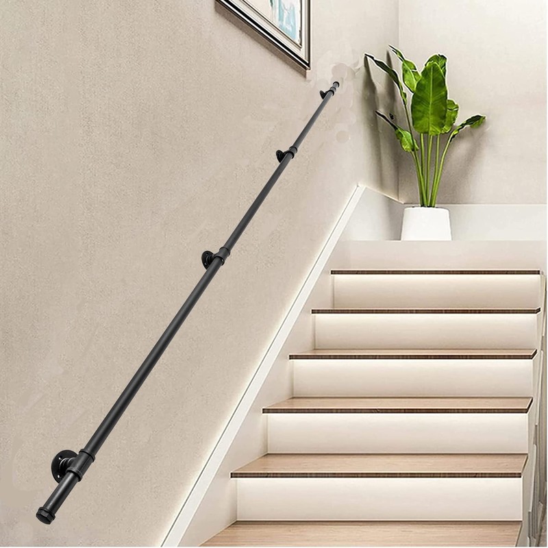 12ft Handrails for Indoor Stairs, Metal Non-Slip Grab Bar Industrial Pipe Handrail Wall Mount