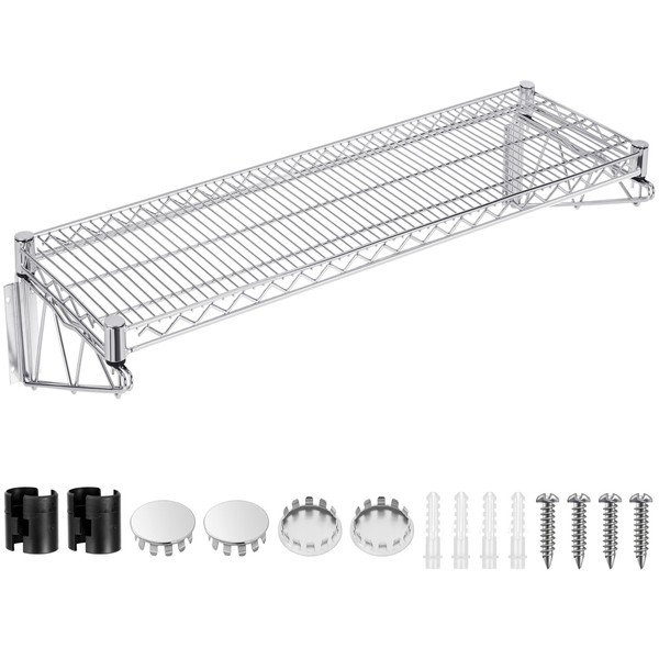 LOYIM 14" Wx 48" L Chrome Wire Wall Mount Shelf, Wall Mount Wire Shelf Kit Heavy Duty Garage Wall Shelving for Wall Storage, Holds Up to 600 Lbs