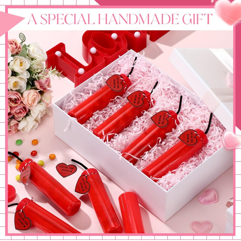 - Valentines Party Favors: these empty candy tubes are designed in the shape of a bomb and in red with a card printed with the words [you are the bomb], which can store your Valentine's Day candy in an attractive and romantic way