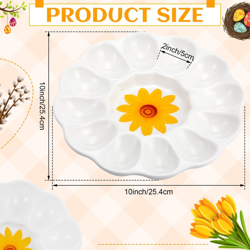 - Quality Material: this sunflower deviled egg platter is made of quality ceramic material without any harmful coatings or chemicals, strong and durable, which can be served for a long time; The size of our deviled egg tray is approximately 8.15 inches/ 20.7 cm (diameter) and 1.1 inches/ 2.8 cm (height), suitable for decoration or use on your dining table