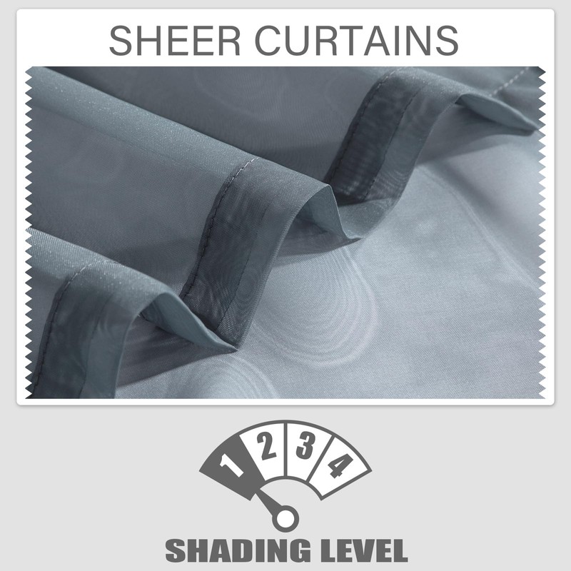 - 【 84 inch Sheer Curtains 】 - 1 panel Gray bedroom sheer curtains in package.Each curtain panel measures 100 inches wide by 84 inches window curtain sheer set.