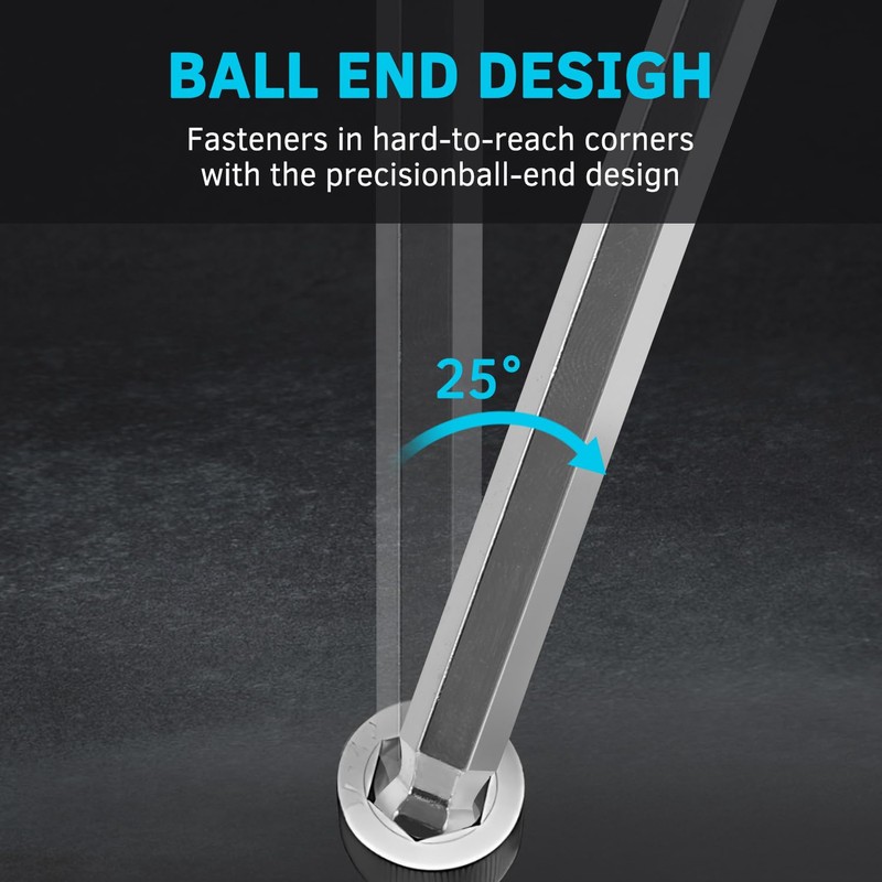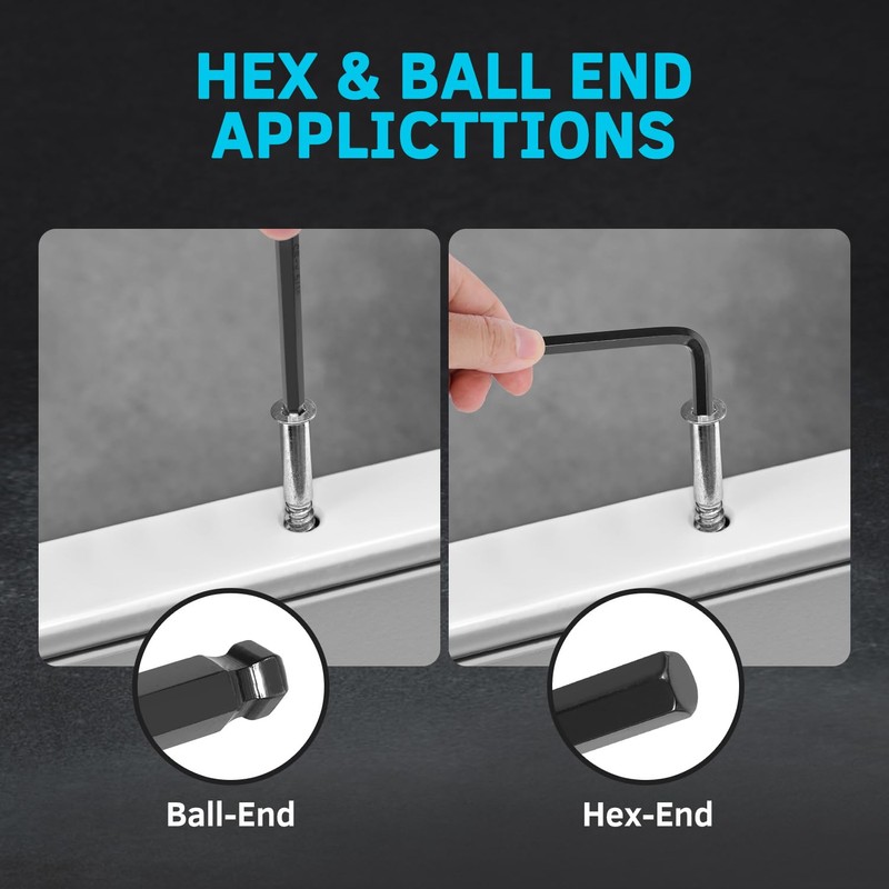 - Hex Keys is Made of Chrome Vanadium Steel (Better strength than carbon steel), with a Black Oxide Surface After Heat Treatment, Which is Durable.