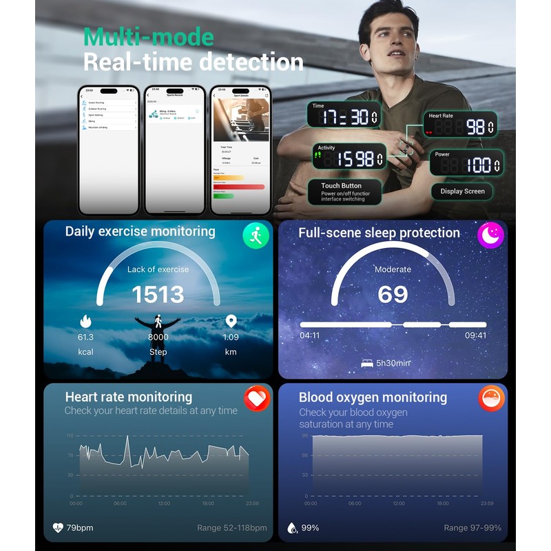 - Health monitoring manager - automatic measurement: intelligent rings for men and women can accurately monitor your activity, heart rate, sleep quality, step count, pressure, HRV, and other physiological indicators. And it monitors and measures automatically every hour. With the intelligent rings for men and women, you can relax and enjoy every beautiful moment