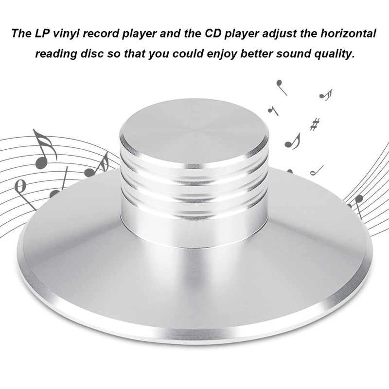 This is a great record stabilizer for LP record player, which will efficiently keep the disc from shaking and reducing vibration with stabilizing rotational speed. for maintaining stability, and improving acoustic quality. Made of aluminum alloy, and it is durable.