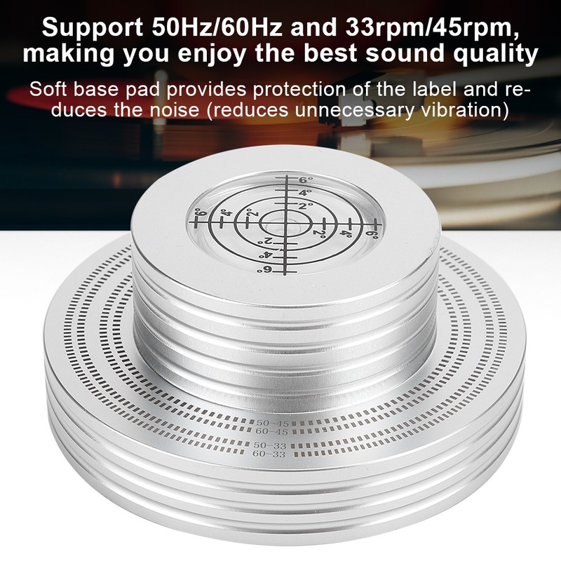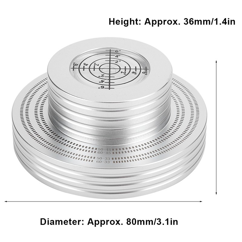 1、Built in high precision gradienter, which can test the balance of turntable/speaker. 2、Support 50Hz/60Hz and 33rpm/45rpm, making you enjoy the best sound quality. 3、Soft base pad provides protection of the label and reduces the noise (reduces unnecessary vibration). 4、Adopt high quality material, sturdy and durable, and you can use for a long time. 5、There are two colors for you to choose from, meeting your different preference.