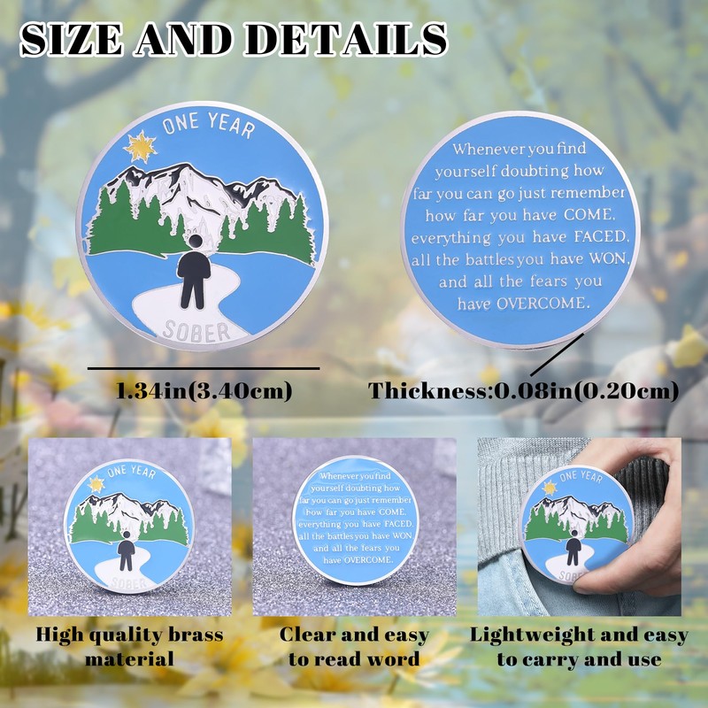 - High-quality: This 1 Year Sober Coin made of high quality brass material, high corrosion resistance, durable and not easy to fade. The pattern text on the back is made up of soft enamel, which has a certain touch feeling and brings you a different feeling.