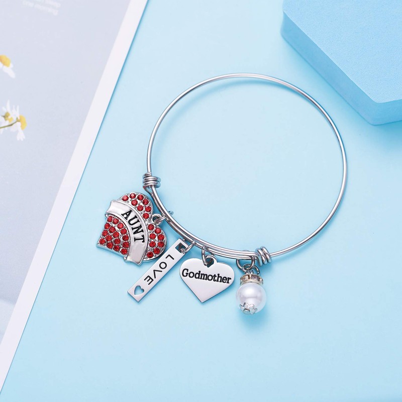 • GODMOTHER GIFTS, Godmother Bracelets, Gifts for Godmother, New Aunt Bangle, Godmother Charm, AUNT Jewelry, Aunt Charm