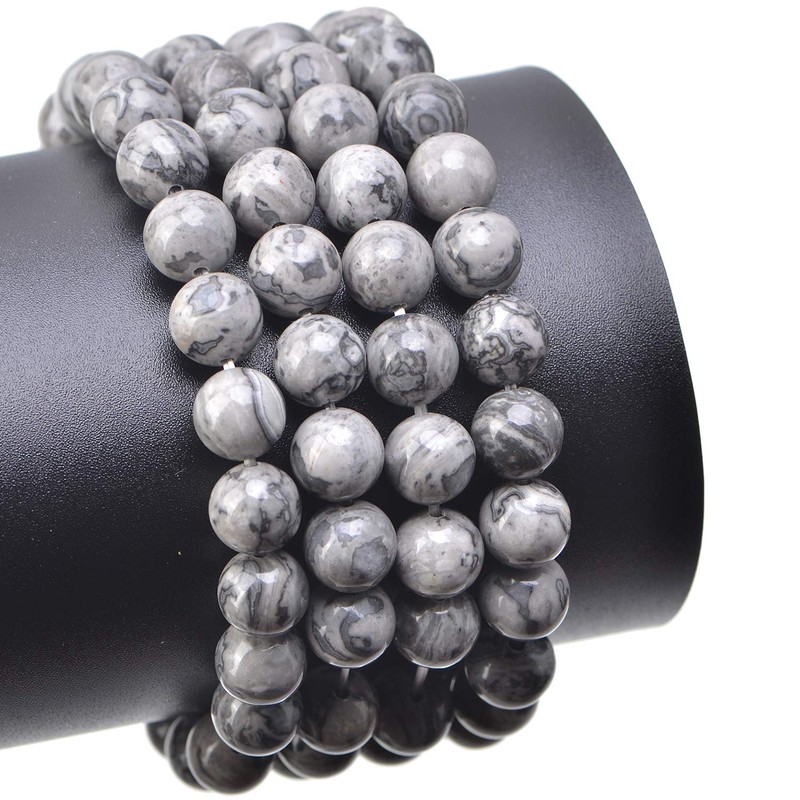 - Material: Genuine Real Map Jasper Stone Beads with White Stretch Cord. Enough to Make 4 Bracelets