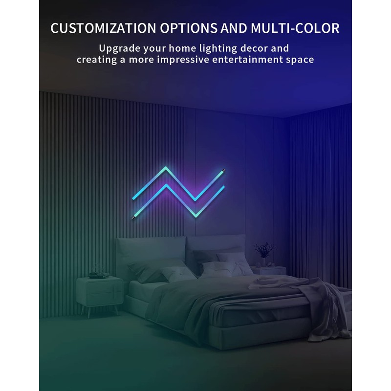 - [CUSTOMIZE YOUR SHAPE] Connect 4 interchangeable sliding wall light segments in any shape you want. 3 pieces L-shaped corner adapter enables you to create more possibility. Provides a way to setup groups control via Smart Life App if you purchase 1 more set