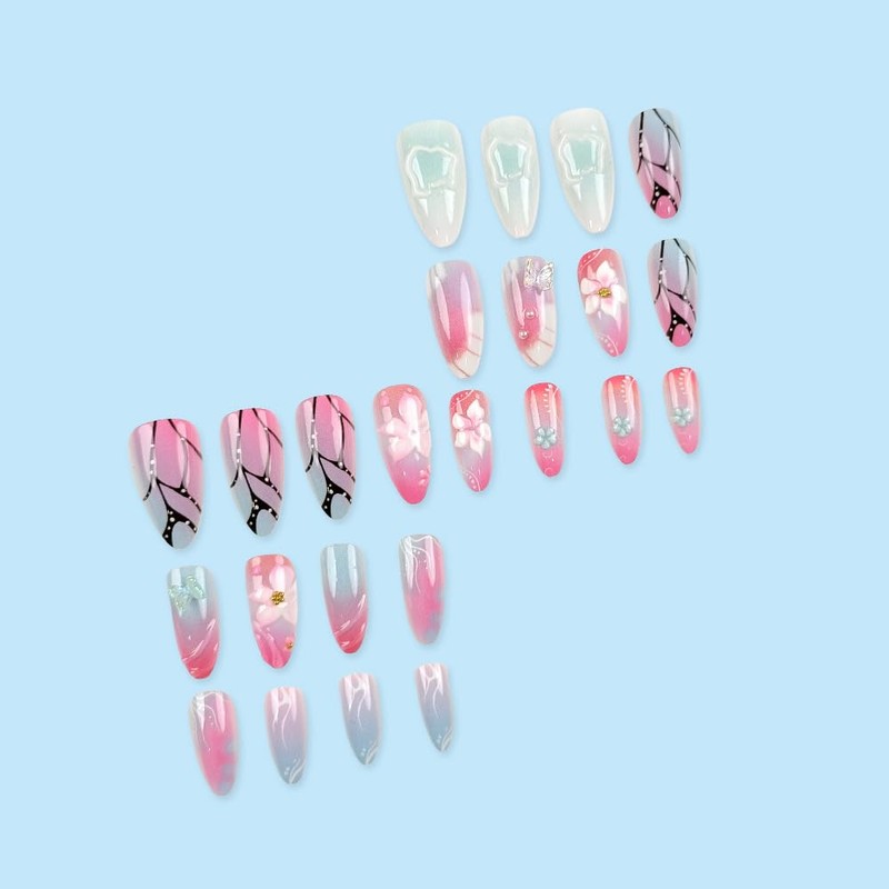 - đ ăPackage Containsăyou will get 24 pieces press on nails almond medium with designs,1 piece nail file, 24pieces nail jelly stickers and 1 piece wooden stick for removing false nails tips. No need to buy other things, you can get the nail salon-like effect.