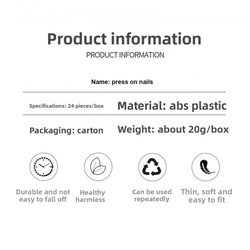 - Kind Tips: Due to transportation reasons, the package does not contain nail glue, the durability of jelly glue tab is limited, we suggest you use your own glue. (Use nail glue stickers, fake nails can be reused, but nail glue tabs are not as good as liquid glue)