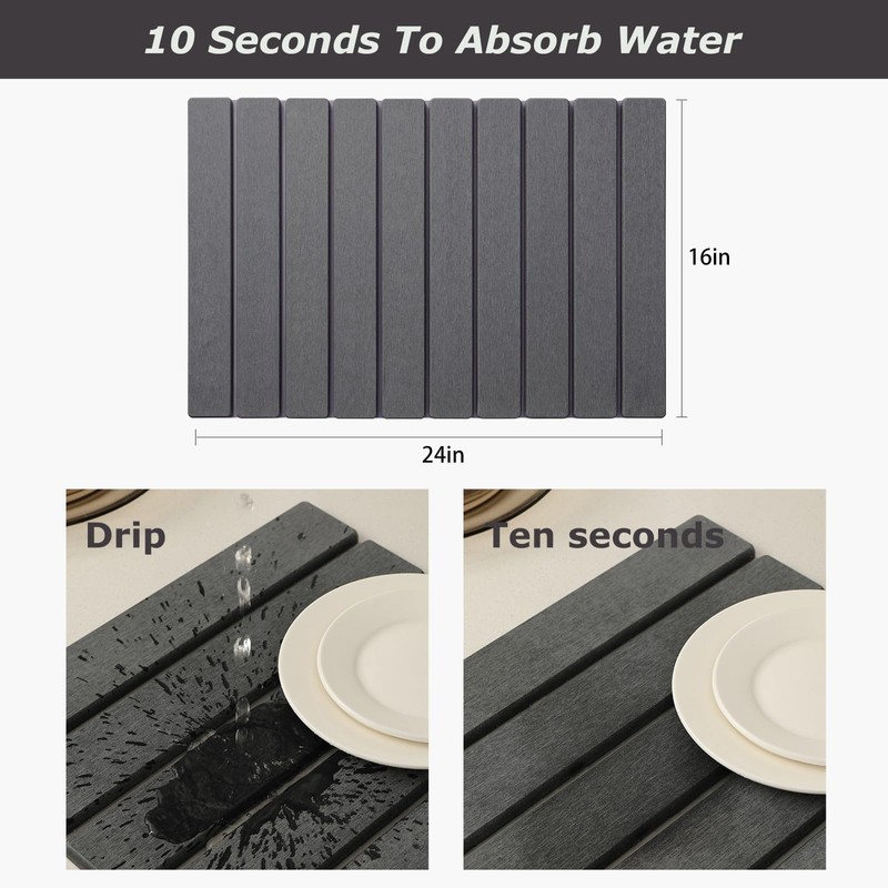 - 【Super Absorbent & Quick Dry】Absorbs water instantly to keep countertops clean and dry; an ideal drying mat for busy kitchens or daily dishwashing; dries faster than silicone or cloth mats ss, and durable