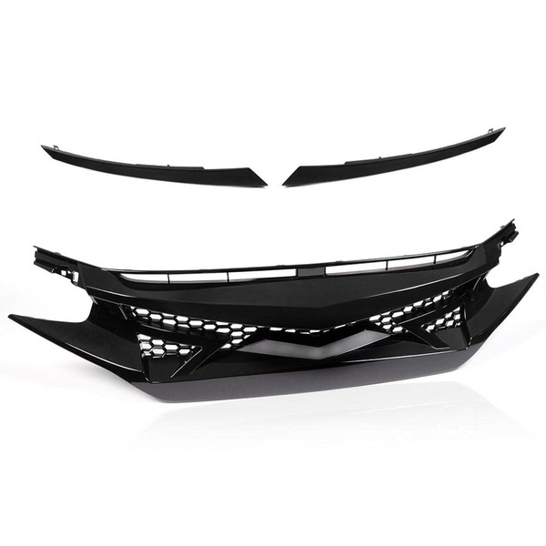 LQI Front Grill Compatible with Honda Civic 10th Gen 2016 2017 2018 Battle Style Bumper Hood Mesh Grille Assembly Eyelids Covers