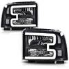LQI Headlight Assembly LED DRL Compatible with Ford F250 F350 F450 F550 2005-2007 /Fit Ford Excursion 2005 Headlamps Clear lens Black Houing Clear Reflector