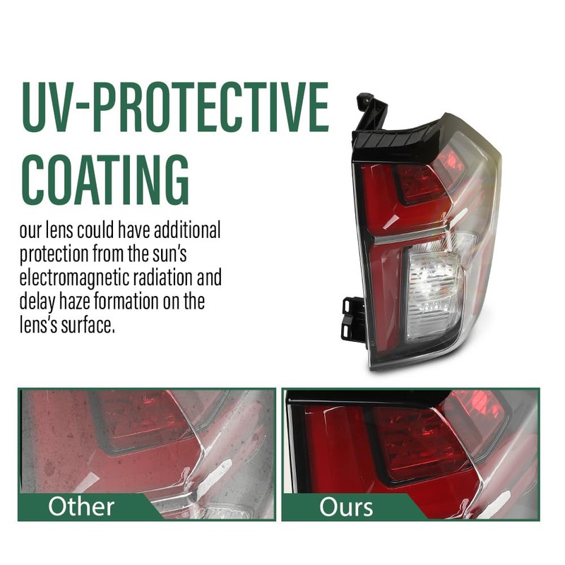 - Premium Material: The PMMA tail light lens will not easily turn yellow or or crack. The impact resistant housing ensures reliable vibration resistance, UV protection and rain corrosion resistance. Without bulb and wiring harness