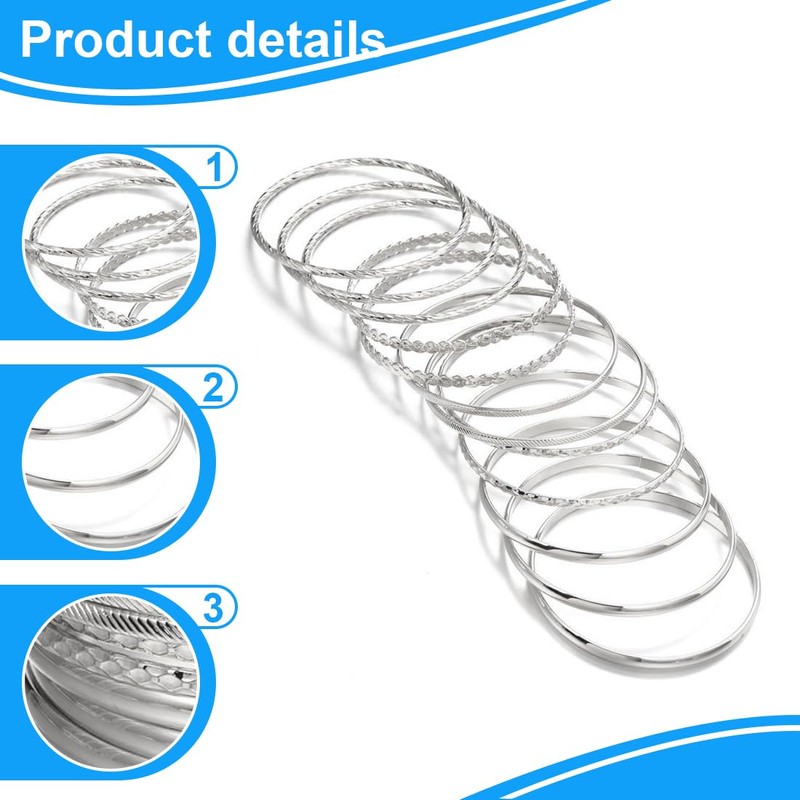 LQIOACU 12 Piece Stackable Bracelet Set for Women (Silver), multicoloured